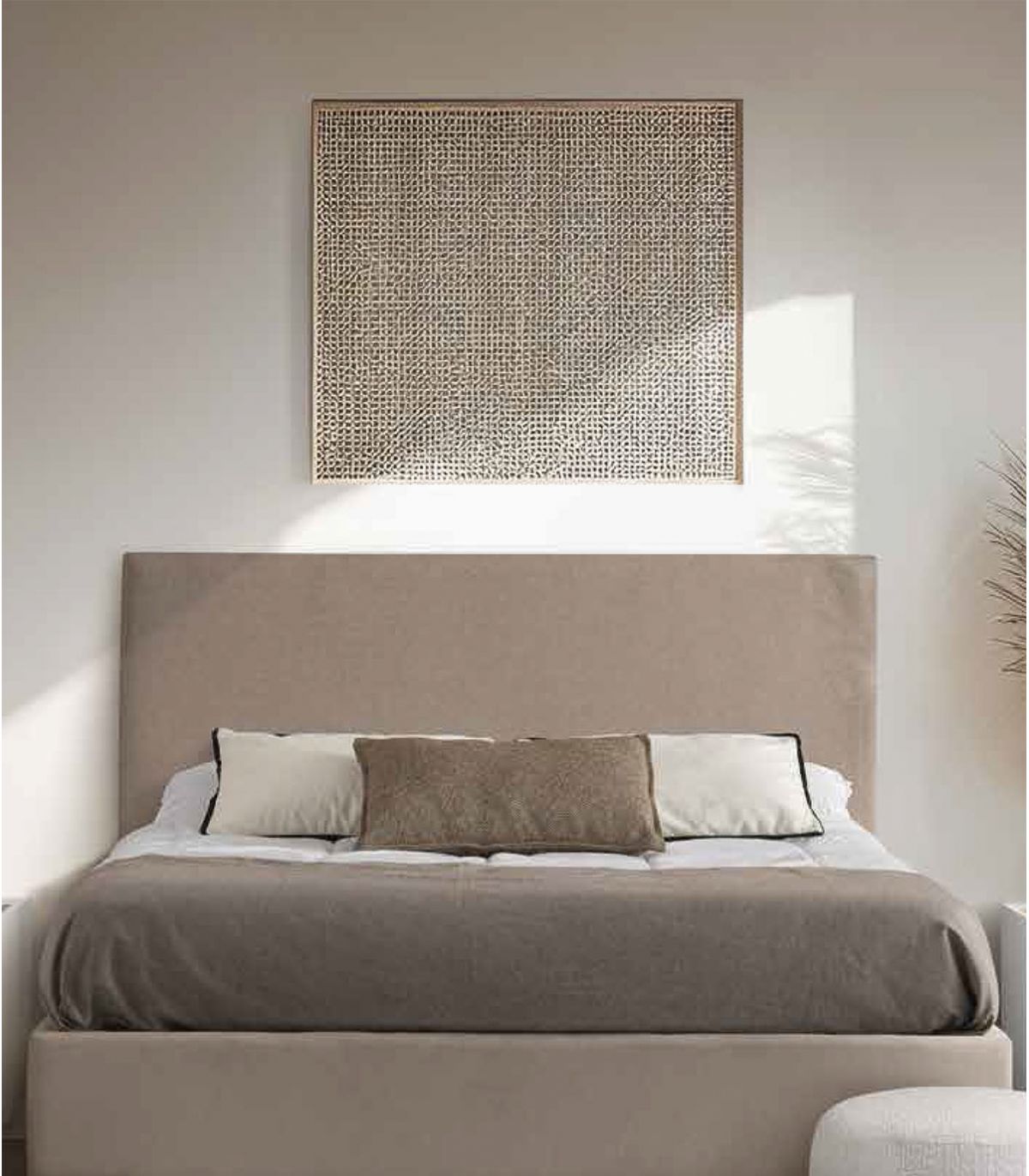• El cabecero tapizado que mostramos en la imagen web principal es GRUPO B, Textil Polo Tierra.
