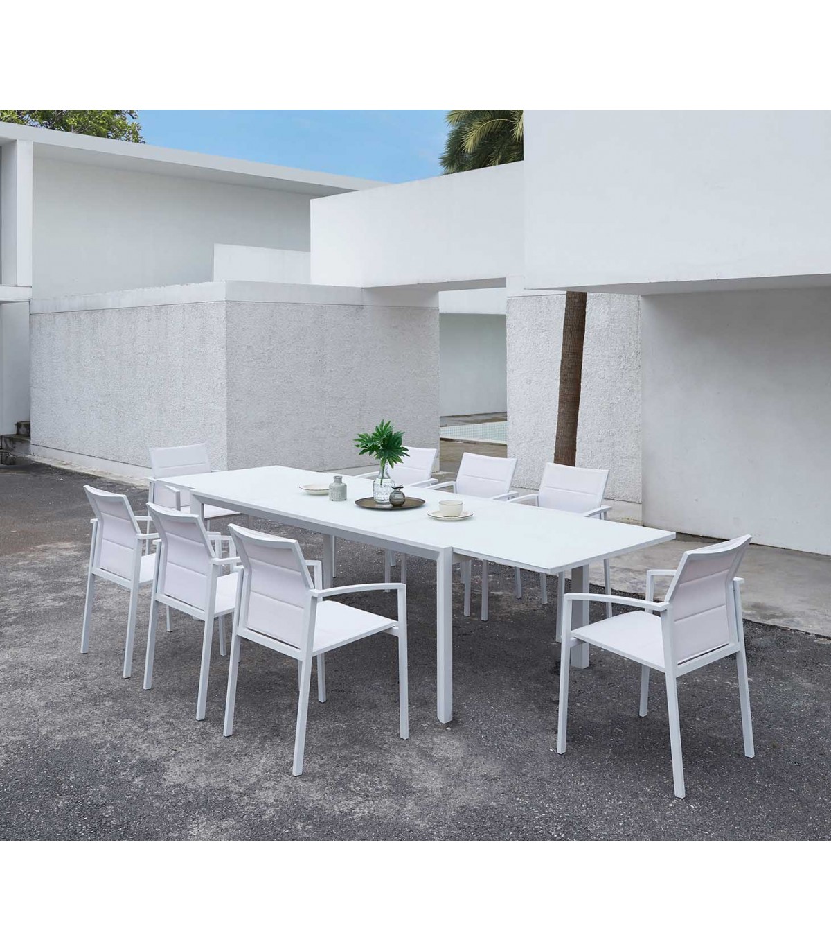 Mesa extensible en aluminio y cristal ORICK Blanca Mesa extensible en aluminio y cristal ORICK Blanca