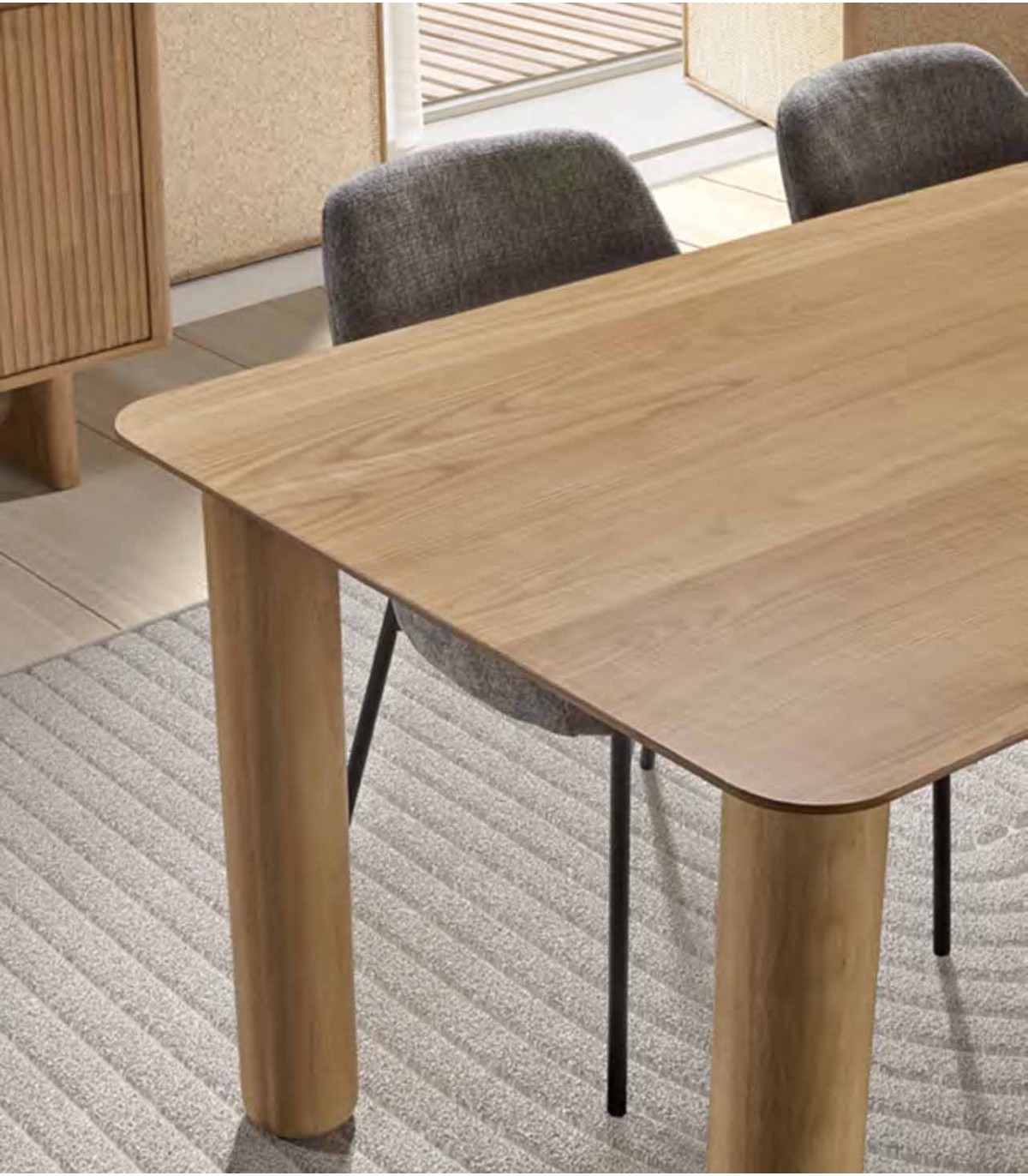El diseño de esquinas redondeadas suaviza su estructura, creando una estética amable, cercana y versátil. Ideal tanto para interiores escandinavos como contemporáneos, la mesa HUNGRÍA convierte cada comida en un momento de calma, conexión y estilo duradero.